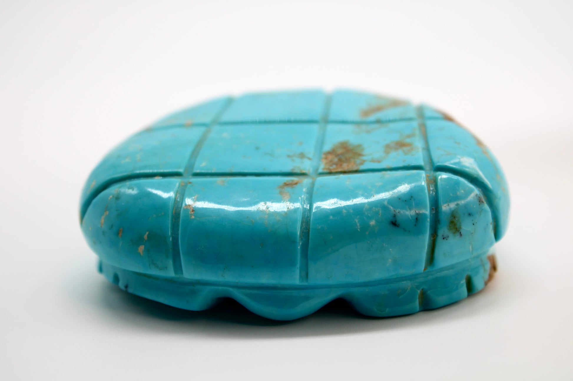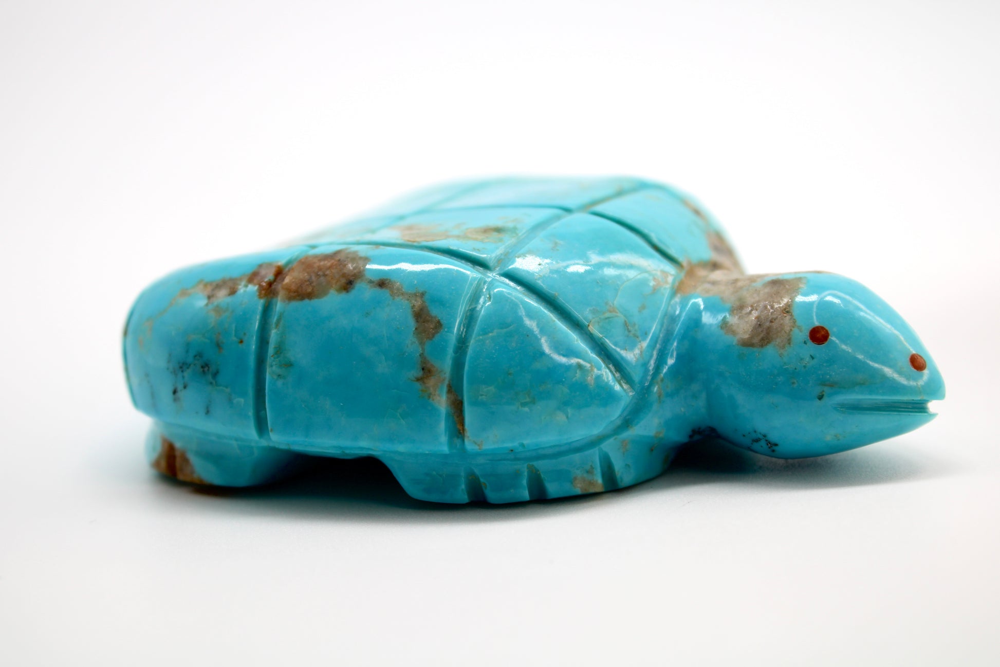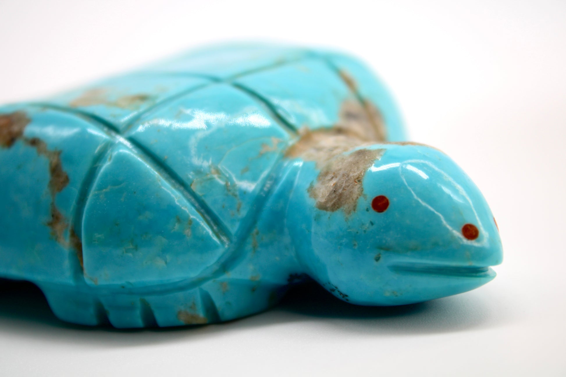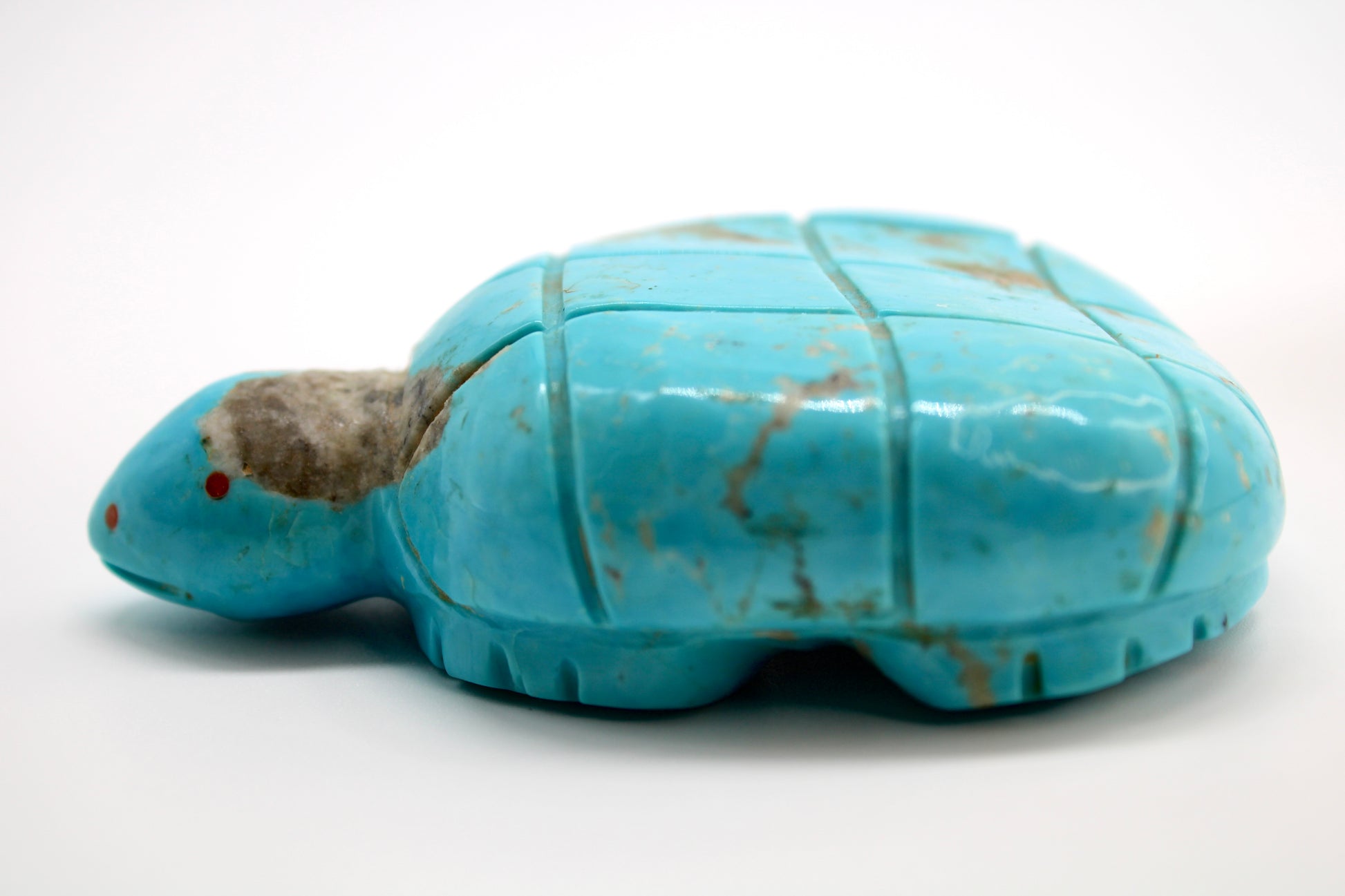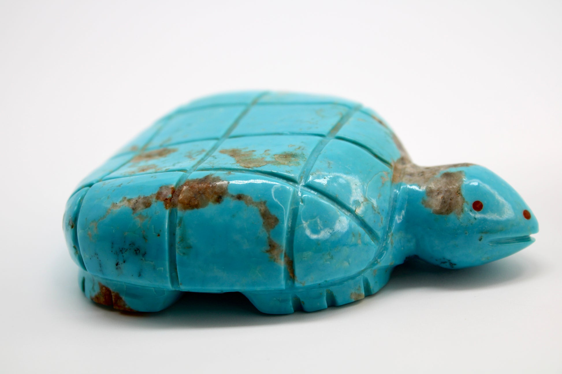 1970s Native Zuni Carved Cripple Creek Turquoise Turtle Fetish Pete & Dinah Gasper