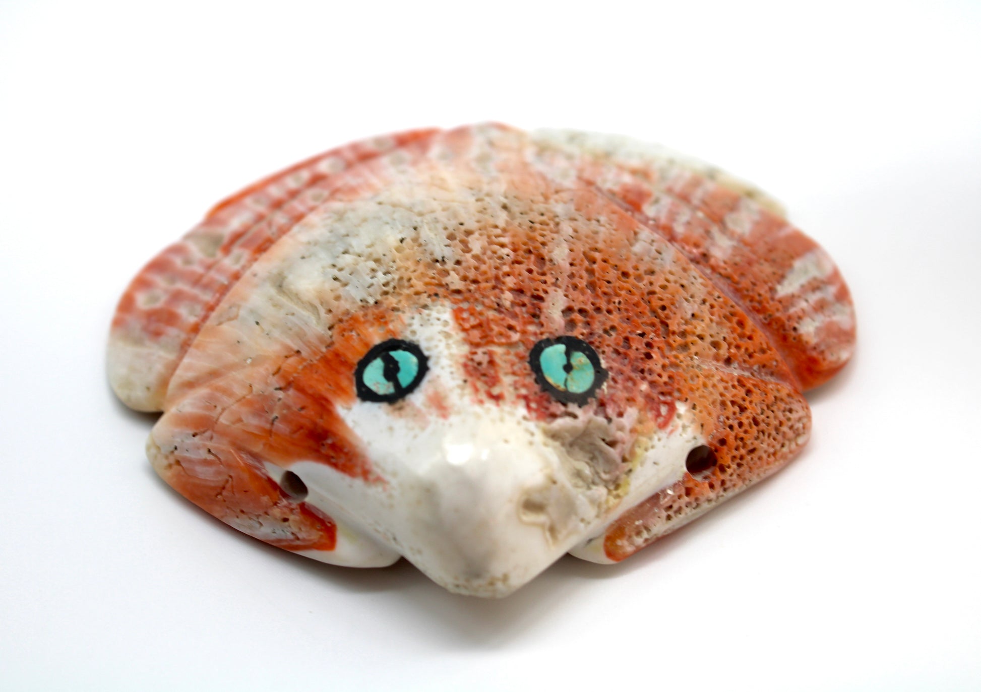 Mid Century Native Zuni Carved Spiny Oyster Frog Fetish Pendant By Leo Poblano (d.)