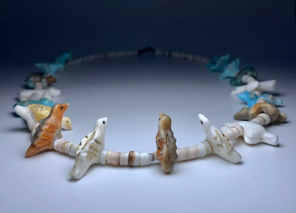 1940s Native Zuni Carved Multi Stone Bird Fetish Necklace By Leekya Deyuse (d.)