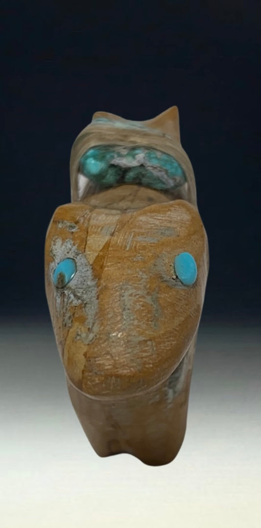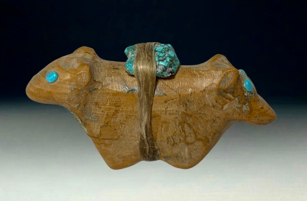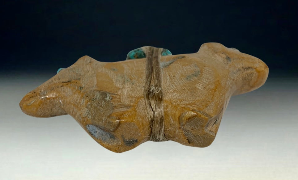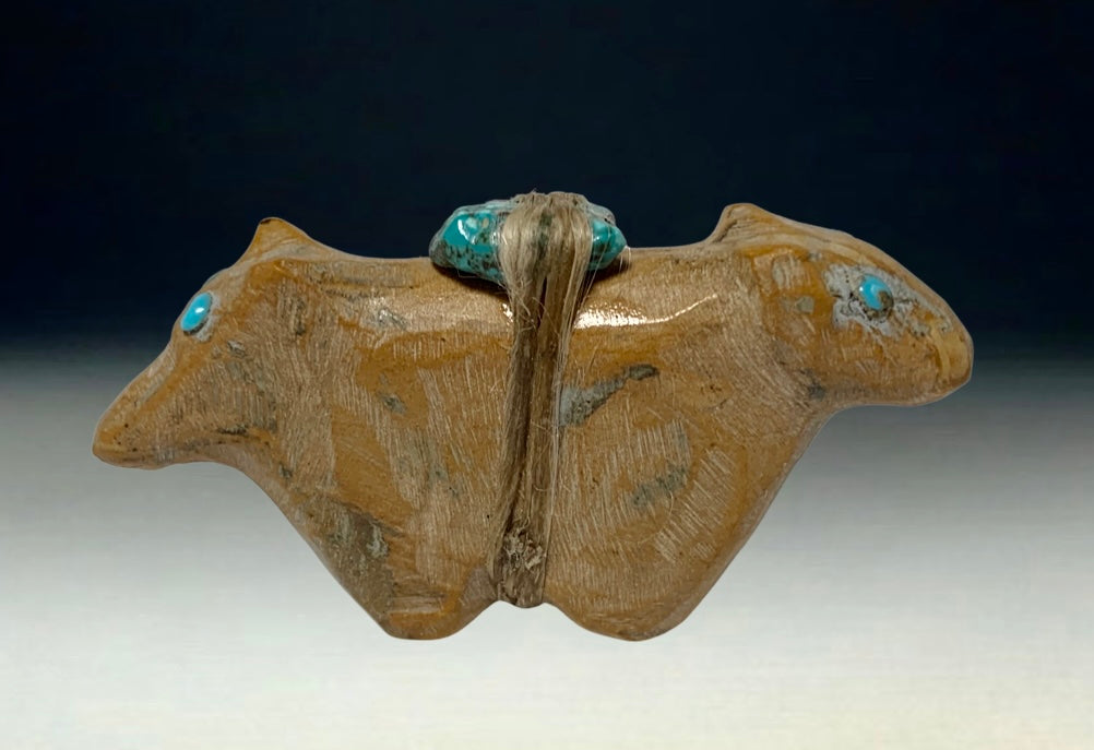 Native Zuni Carved Travertine Double Headed Bear Fetish By Jimmie Etsate
